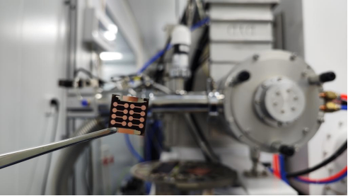 我国下一代光伏技术取得新进展,南京大学谭海仁团队和国防科技创新研究院常超团队联合运用太赫兹技术,对全钙钛矿叠层光伏电池内部载流子输运行为实现精准、无损探测。改进后的电池光电转化效率突破30%,国际权威学术期刊《自然》10月28日在线发表相关研究论文。这是南京大学等单位研制的光电转化效率30.1%全钙钛矿叠层光伏电池。(受访者供图)  据谭海仁介绍,钙钛矿光伏电池长期难以提升光电转化效率,主要难在无